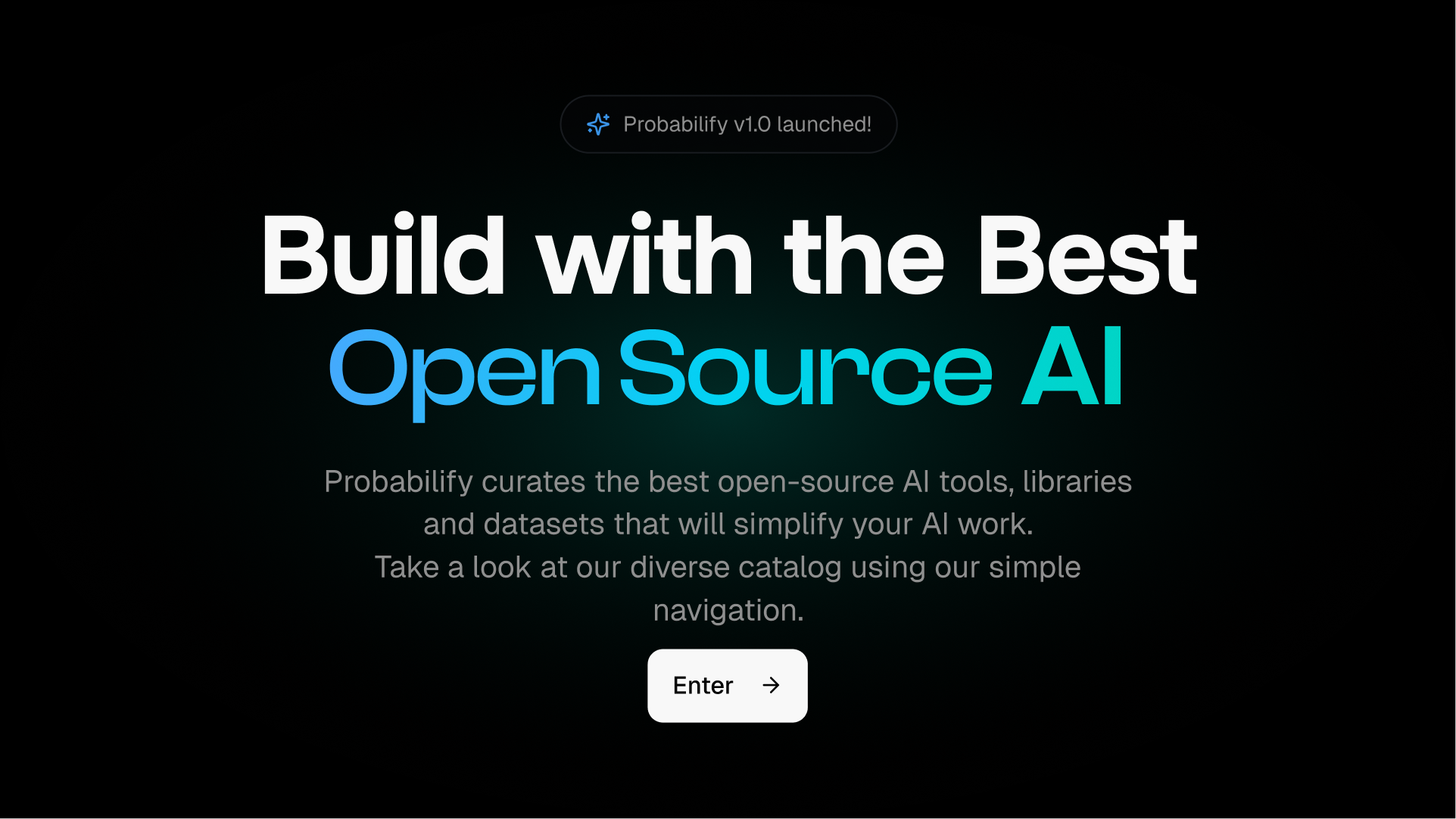 Developers, researchers, and AI enthusiasts often spend hours searching scattered repositories, documentation sites, and forums to find the right solutions for their projects. To circumvent this, Probabilify aimed to simplify this process by providing a centralized, curated catalog of the most popular open-source AI tools and libraries, making it easier for users to explore and select resources tailored to their needs.